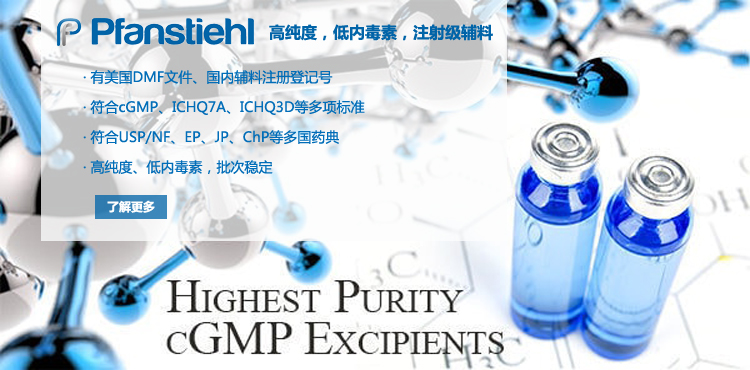 “熱烈祝賀Pfanstiehl的注射級甘氨酸Glycine(G-140)喜獲CDE登記號F20250000403, 這是Pfanstiehl產品獲得的第18個CDE登記號!”甘氨酸在醫藥輔料制劑中應用廣泛,, 可作為緩沖劑,增溶劑,穩定劑等,具有諸多優勢。Pfanstiehl秉承一貫高品質理念,為滿足全球生物制藥行業對于高品質甘氨酸的需求,隆重推出的注射級甘氨酸Glycine (G-140), 具有超高純度,超低內毒素,超低金屬殘留的特點,單獨檢測29種金屬離子,并且新增DNA,RNA,DNA酶,RNA酶和脂肪酶,亞硝酸鹽等多項質量指標的檢測,符合多國藥典規定(USP, EP, BP, JPE, ChP),可用于生物治療性藥物和疫苗的生產。產品信息:· 產品名稱:Glycine, High Purity, Low Endotoxin, Low Metals, USP, EP, BP, JPE, ChP (G-140)· 中文名稱:甘氨酸· 分子式:C2H5NO2· 分子量:75.07 g / mol· CAS號:56-40-6· 產品貨號:G-140產品特點: · 超高純度,超低內毒素,超低微生物含量,超低金屬雜質殘留· 質量指標新增DNA,RNA,DNA酶,RNA酶,脂肪酶和亞硝酸鹽檢測· 符合多國藥典:USP, EP, BP, JPE, ChP· 符合ICH Q3D標準· 符合GMP標準· 已獲DMF和CDE登記號 產品應用:· 緩沖劑· 穩定劑· 增溶劑如果您對Pfanstiehl注射級別Glycine G-140感興趣,歡迎聯系Pfanstiehl 中國區代理商北京西美杰科技有限公司獲得如下詳細的產品概況說明文件和測試樣品。Pfanstiehl Inc.最新產品系列如下,歡迎聯系北京西美杰科技有限公司獲取100g裝免費樣品。北京西美杰科技有限公司為Pfanstiehl中國代理,為客戶提供完善的技術支持與售后服務。歡迎撥打西美杰客服電話400-050-4006或者登陸網站www_xmjsci_com.doshou.com了解更多信息。 更多>西美杰介紹